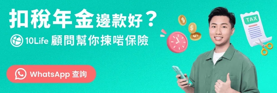 大家投保扣稅年金時,宜了解自己的購買目的,例如儲蓄、自製退休長糧或對沖長壽風險,然後根據個人需要和財務狀況,揀選適合產品。假若讀者想了解更多,選擇適合自己的年金扣稅產品,歡迎與10Life的保險顧問聯絡。