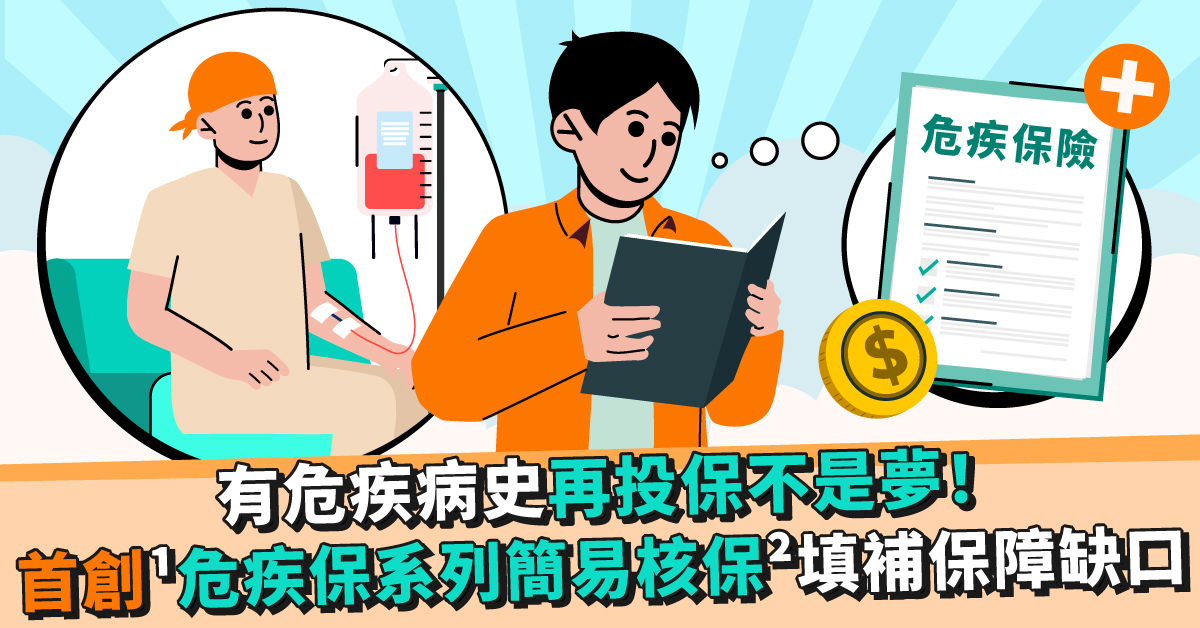有危疾病史再投保不是夢!首創1危疾保系列簡易核保2填補保障缺口